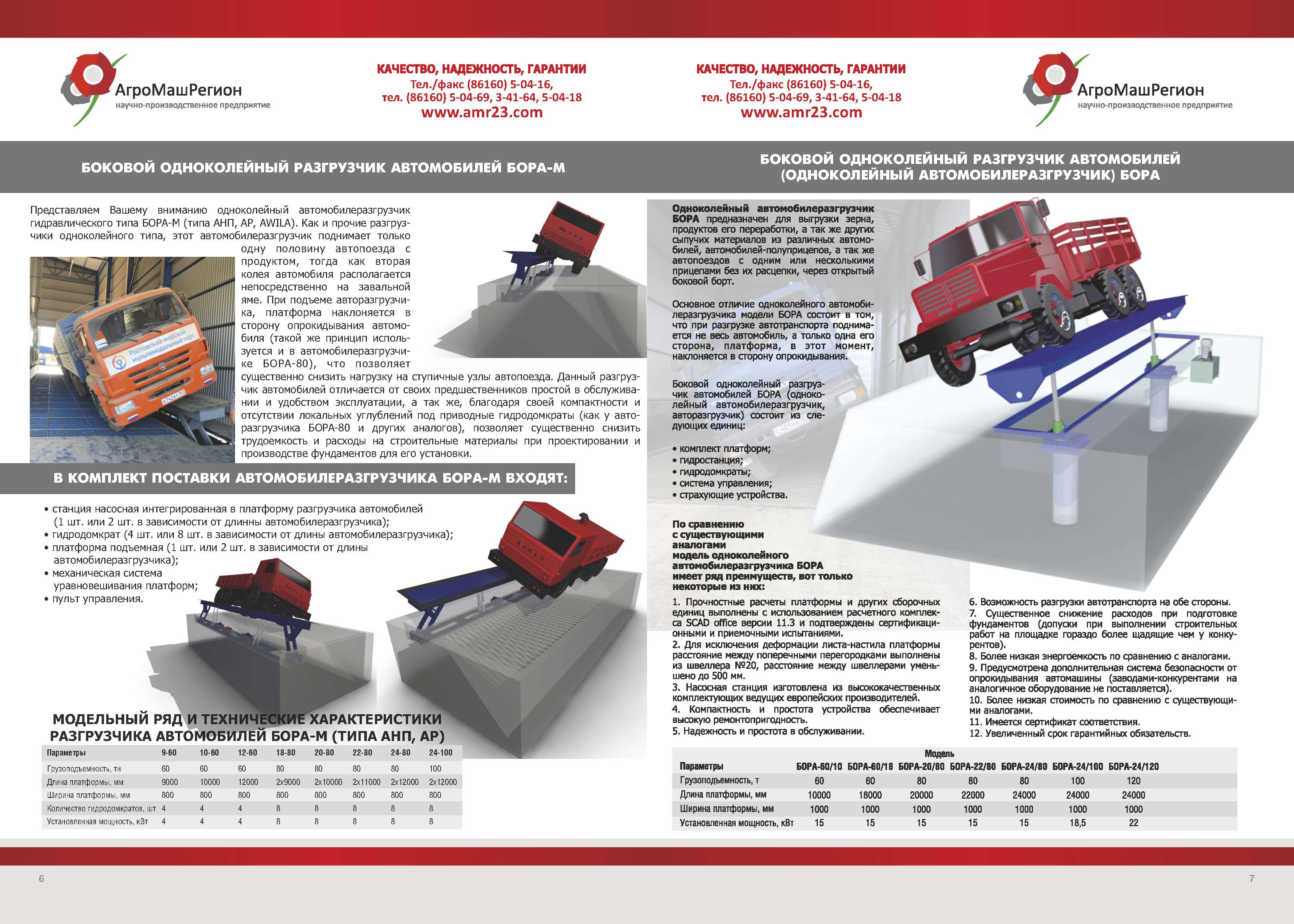 Модельный ряд и технические характеристики разгрузчика автомобилей БОРА-М (типа АНП, АР)