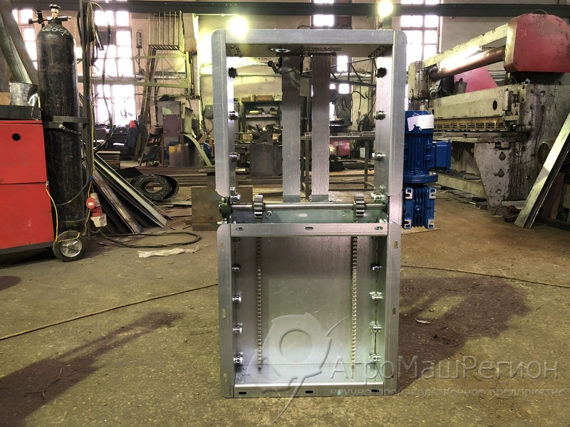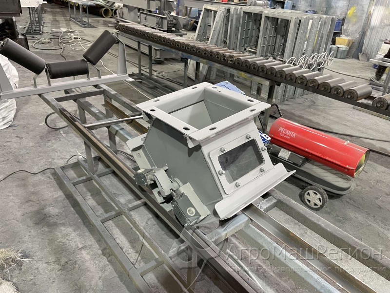Привод состоит из датчиков, рычага, мотор-редуктора. Для изменения направления потока материала рычаг меняет положение заслонки. Разработаны модели с ручным, электрическим и пневматическим механизмом привода. Заслонка нужна для направления продукции в одном или сразу в обоих потоках.