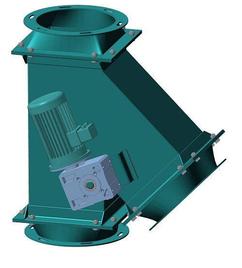 Привод состоит из датчиков, рычага, мотор-редуктора. Для изменения направления потока материала рычаг меняет положение заслонки. Разработаны модели с ручным, электрическим и пневматическим механизмом привода. Заслонка нужна для направления продукции в одном или сразу в обоих потоках.