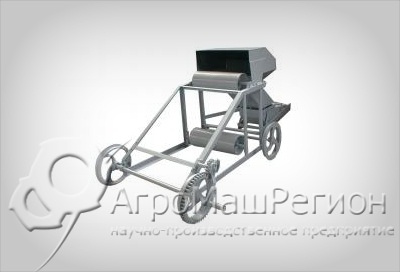 Устройство состоит из рамы, установленной на четыре колеса. На ней смонтированы два барабана и воронка для разгрузки. Воронка при этом может быть оснащена перекидным клапаном, который позволяет контролировать направление сыпучего груза. Для увеличения дальности разбрасывания зерна в разгрузочной воронке устанавливают крыльчатку, вращающуюся от электропривода. Имеется распределительная головка, механизм передвижения и насыпные лотки.